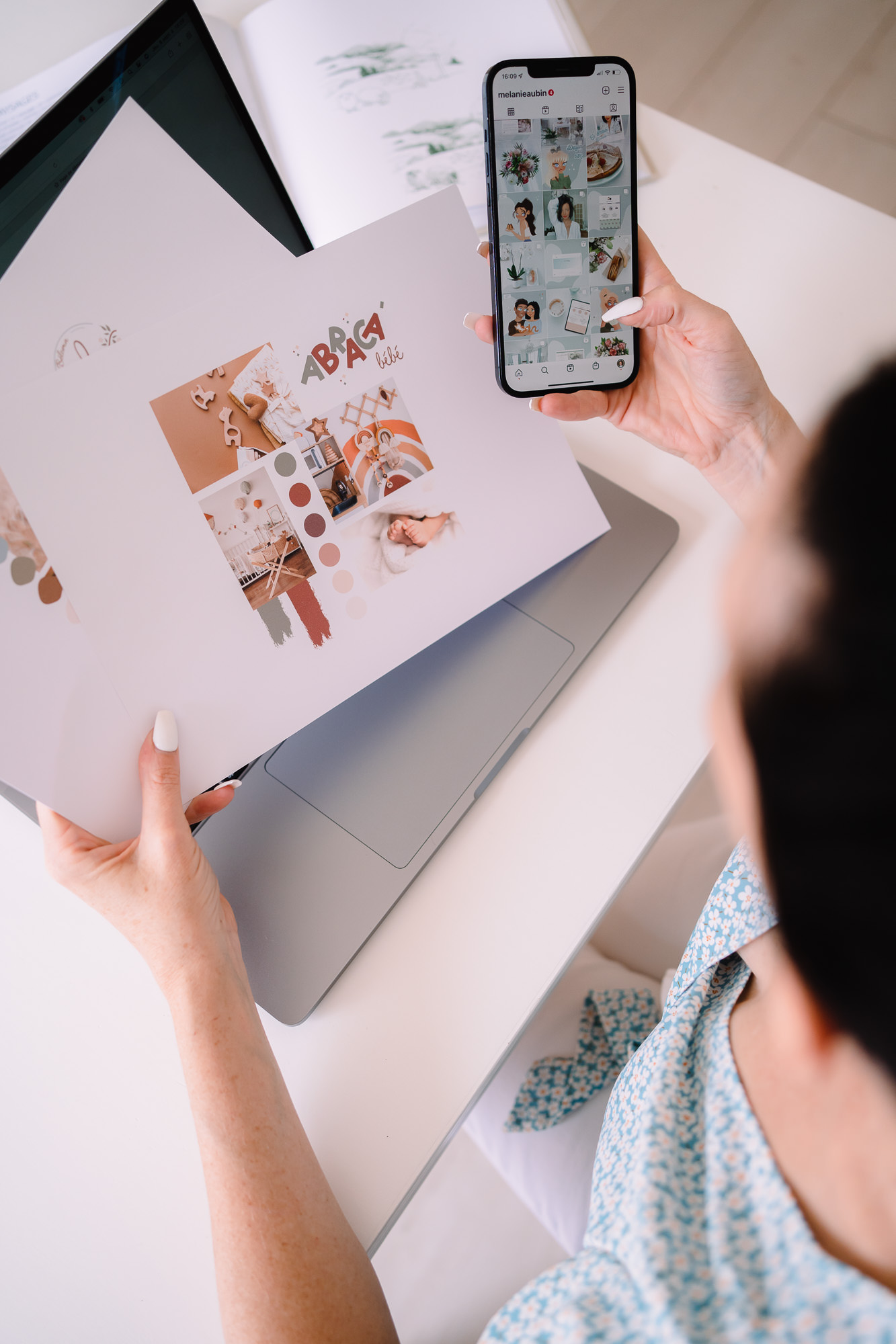 Pour ses séances, nous imaginons des ambiances créatives & lifestyle en respectant toujours sa palette graphique dans les tons de bleu menthe. L’objectif : mettre en valeur sa personnalité affirmée, simplifier sa création de contenus, communiquer sur ses engagements sociétaux et rendre honneur à sa patte artistique & sa créativité.