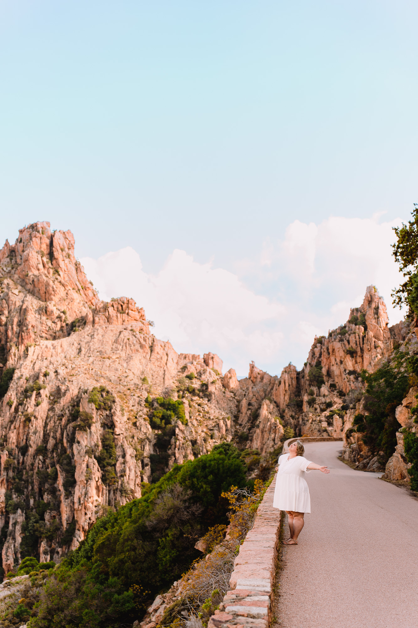 Il n’en fallait pas plus pour que Marjorie et moi planifions la séance photo de ses rêves en Corse. Entre Ajaccio et Piana, nous avons créé des photos dans un bar élégant à ciel ouvert, à la plage au coucher du soleil et entre les magiques falaises de Piana.